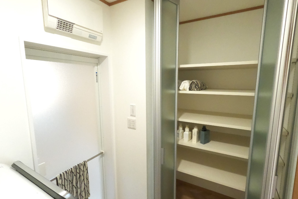 脱衣所にも大きな収納を設け、洗濯やお風呂で使うものはここに収納することができます。適材適所に収納ができると、