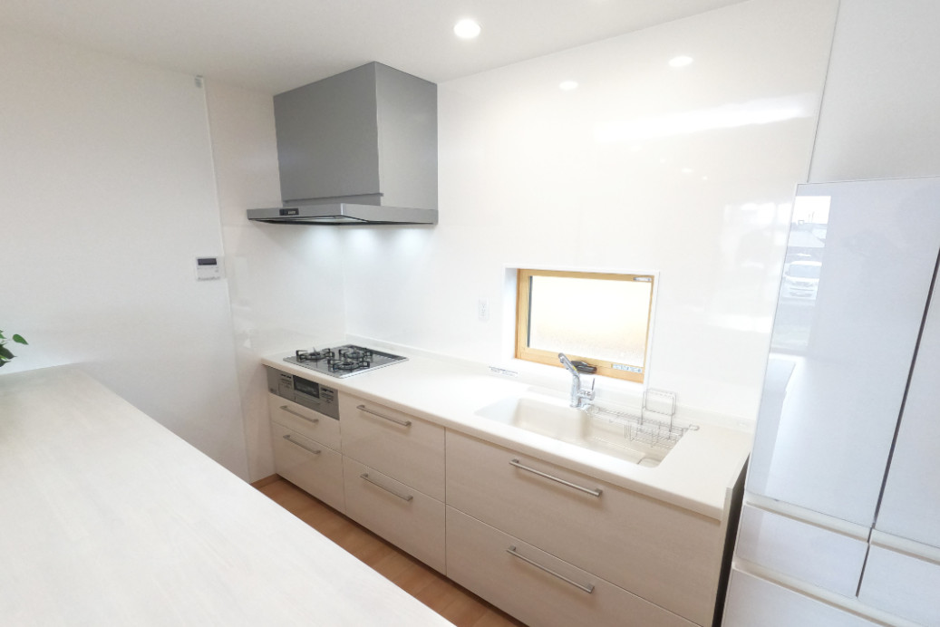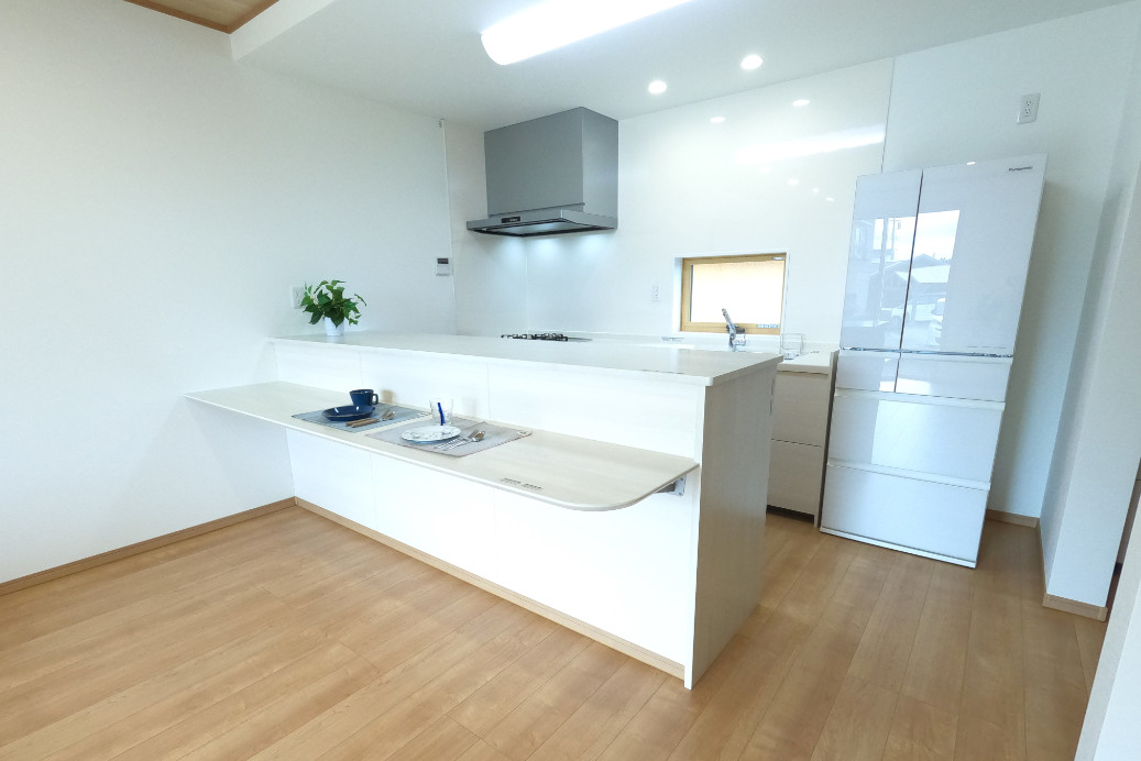 急な来客でもきれいなキッチンでお出迎え出来ます。カウンターテーブルでご飯を食べたり勉強したりと、