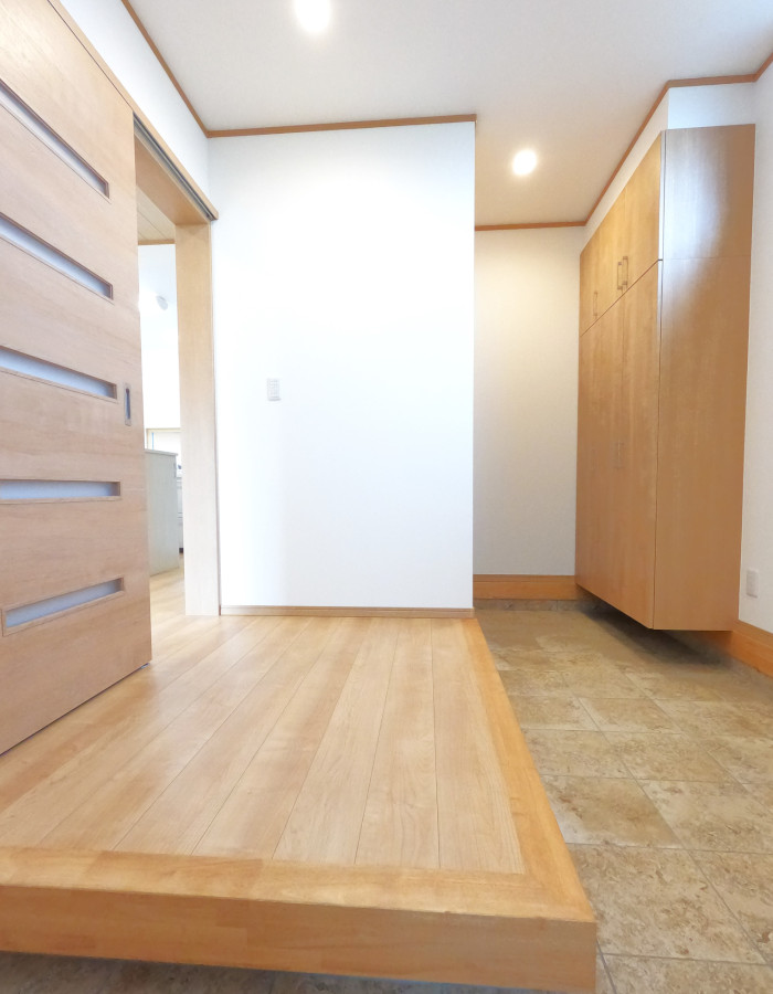ここからすぐお風呂場に行けるので廊下も汚れません。温かな家族の笑顔が見えるご自宅になりました。