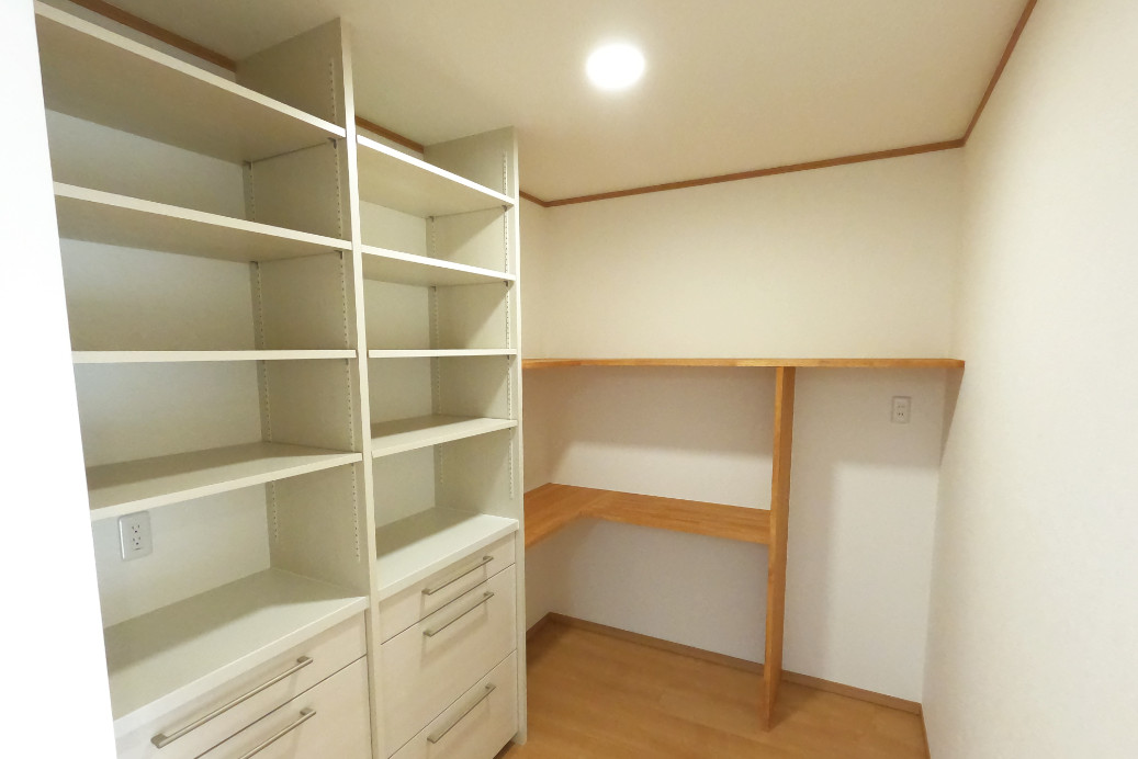 お友達を呼んでホームパーティーをするのも楽しそうですね。キッチン横のパントリーは広々と設計されているので、