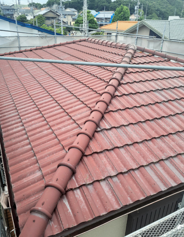 洋瓦からガルバリウム鋼板屋根に葺き替え、軽量化により地震対策になり、断熱防音効果も上がる一石三丁の屋根リフォームです。